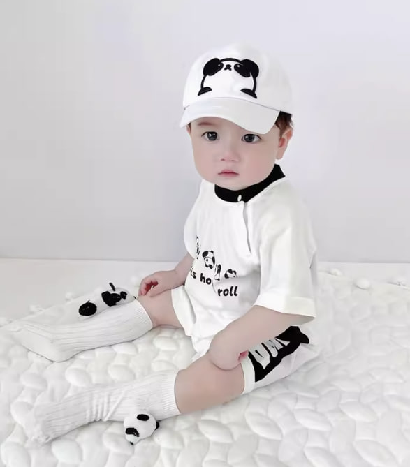 Baby boy contrast color panda jersey newborn cartoon print short-sleeved crawling clothes summer baby one-piece romper short crawling clothes
