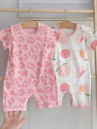 Baby Girls Ruffle Short Sleeve Romper Baby Summer Onesie Little Kids Baby Thin Pajamas 0-2 Years Old