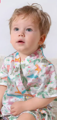 Material composition: 100% mulberry silk Item number: Dinosaur silk monk's clothing Applicable age: 2 years old 18 months 6 months 12 months 3 months
