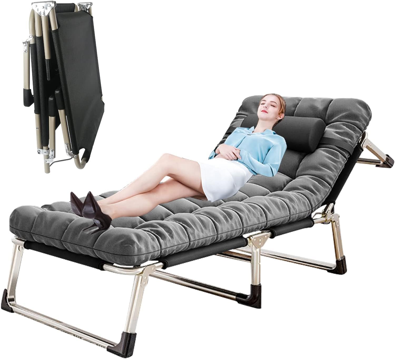 Sibosen Folding Camping Cot, Heavy Duty Sleeping Cots with Mattress, Portable Camping Bed Sleeping Cot for Adults Home Office Nap Vocation Outdoor (Grey)