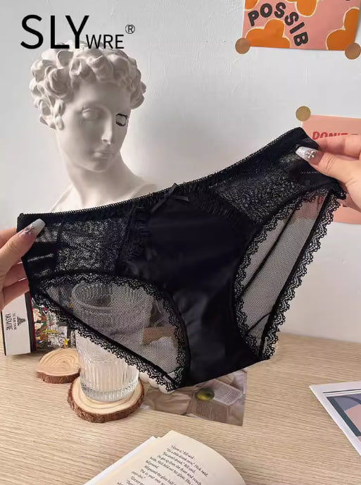 SLY WRE summer ultra-thin ice silk seamless underwear women's low waist sexy lace mesh transparent triangle shorts