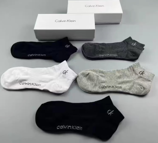 Spot American genuine ck men's short tube socks boat socks shallow mouth logo antibacterial solid color women's socks 5 pairs gift box